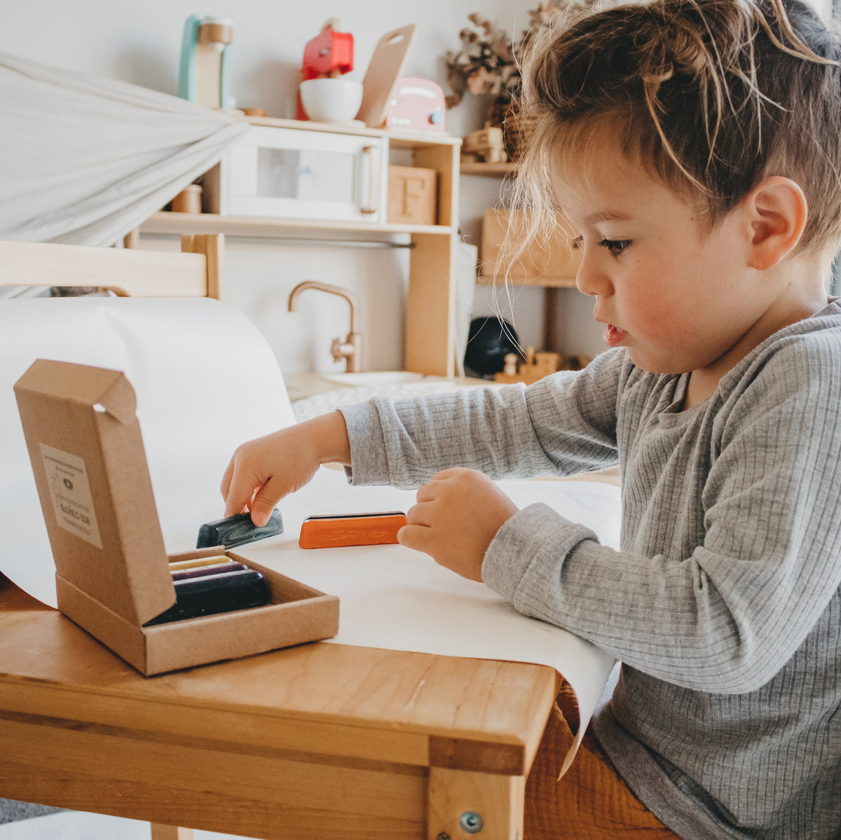 The large chunky sticks are perfect for both the 'fisted grasp' of early development right through to 'tripod pencil grip' as your babe develops their pre-writing fine motor skills. They have both a flat side - great for shading - as well as a rounded end. Our crayons are thick, making them snap resistant - but please avoid throwing them when the excitement of the artistic masterpiece before you gets too much.
