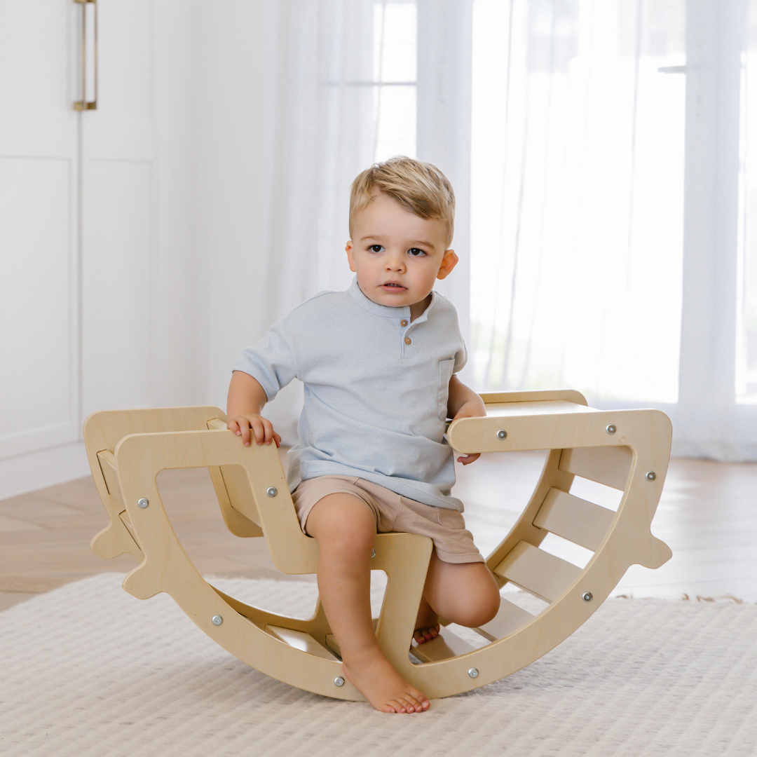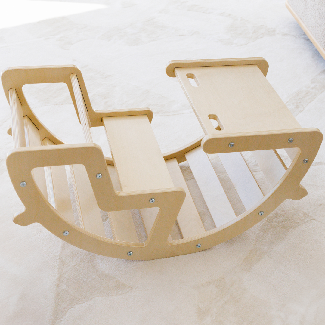 Made from high-quality birch plywood with smooth, rounded edges, our 2-in-1 Pikler & Rocker is safe, sturdy, and built to last through years of climbing, rocking, and creative adventures. Its minimalist design ensures it looks right at home in any modern playroom or living space.