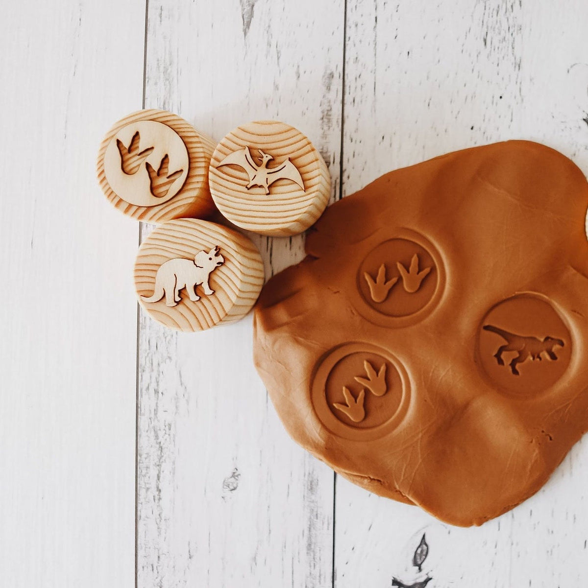 Bring the prehistoric world into modern day play with a set of Dinosaur Wooden Stamps! These stamp sets are handmade in Australia and can be used in play dough, kinetic sand, air dry clay or even baking for dinosaur cookie imprints!