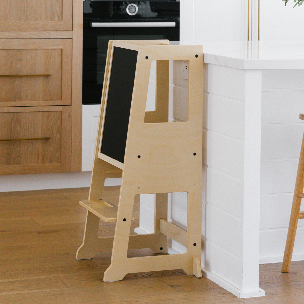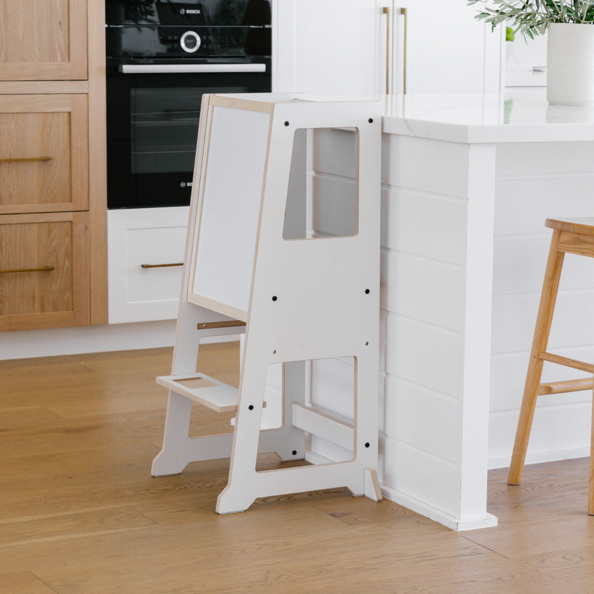 Our birch toddler kitchen helper is made from beautiful Birch Ply, which is sustainably sourced and is a FSC certified renewable resource. Our Slimline Learning Tower is also available in the kitchen classic, white.